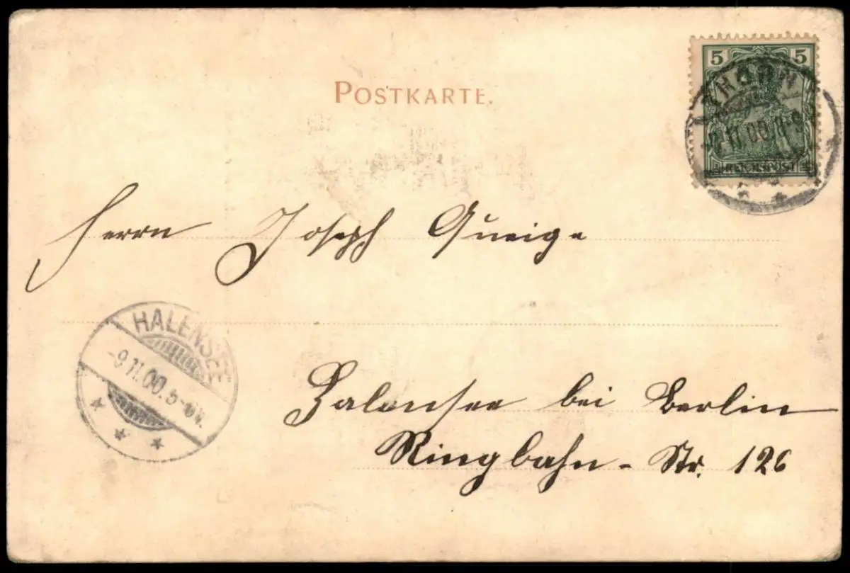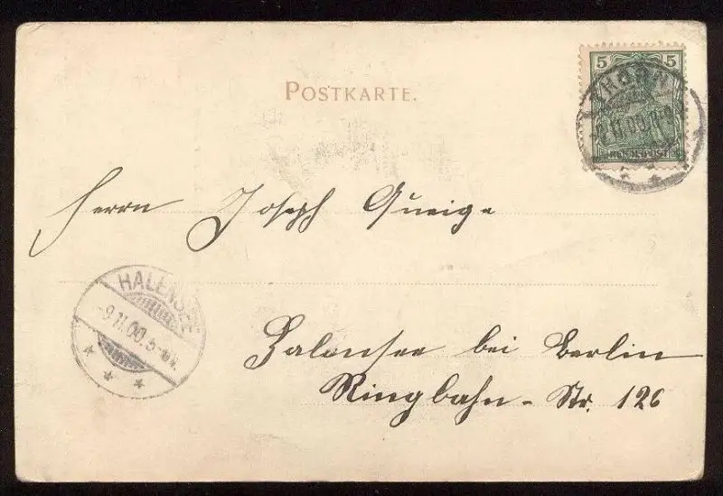 Gelaufen: 08.11.1900 mit Stempel Thorn nach Halensee bei Berlin mit Ankunftsstempel 09.11.1900Erhaltung (s. Scan): gut, Ecken minimal bestoßen / 916546