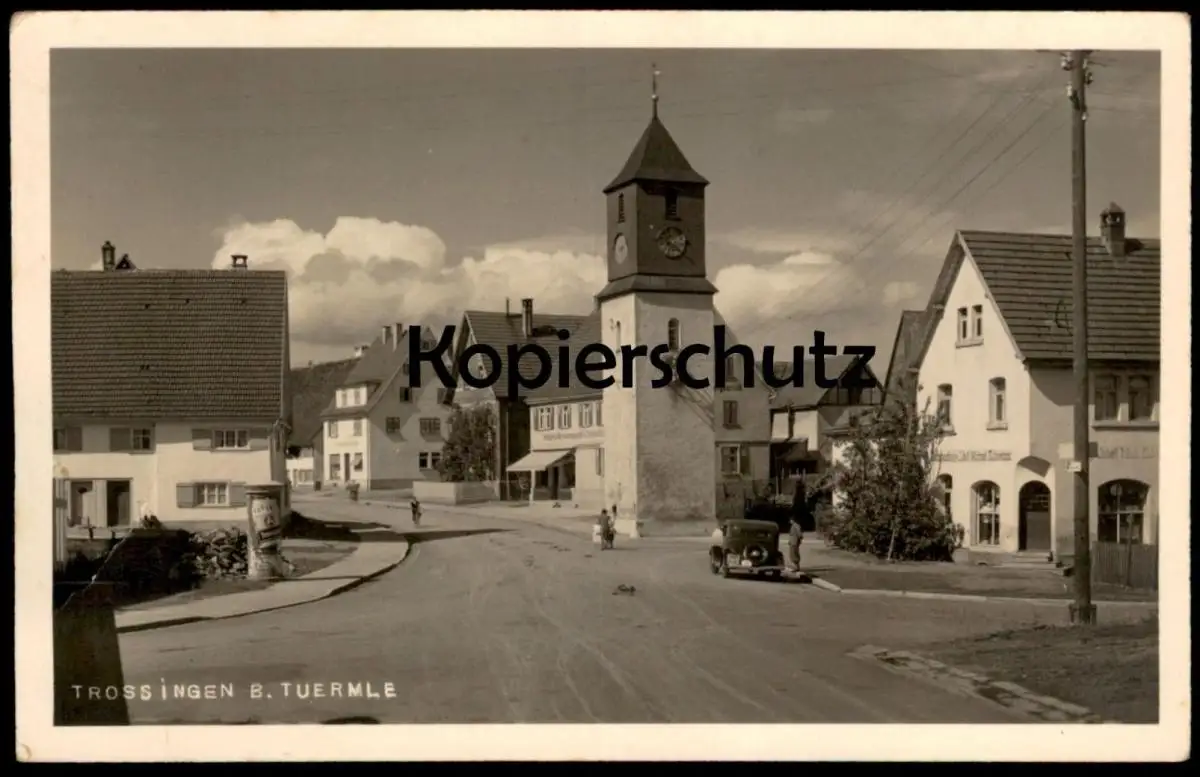 ALTE POSTKARTE TROSSINGEN BEIM TUERMLE Auto Litfasssäule Geschäft ...handlung Johann Michael Schweizer Ansichtskarte
