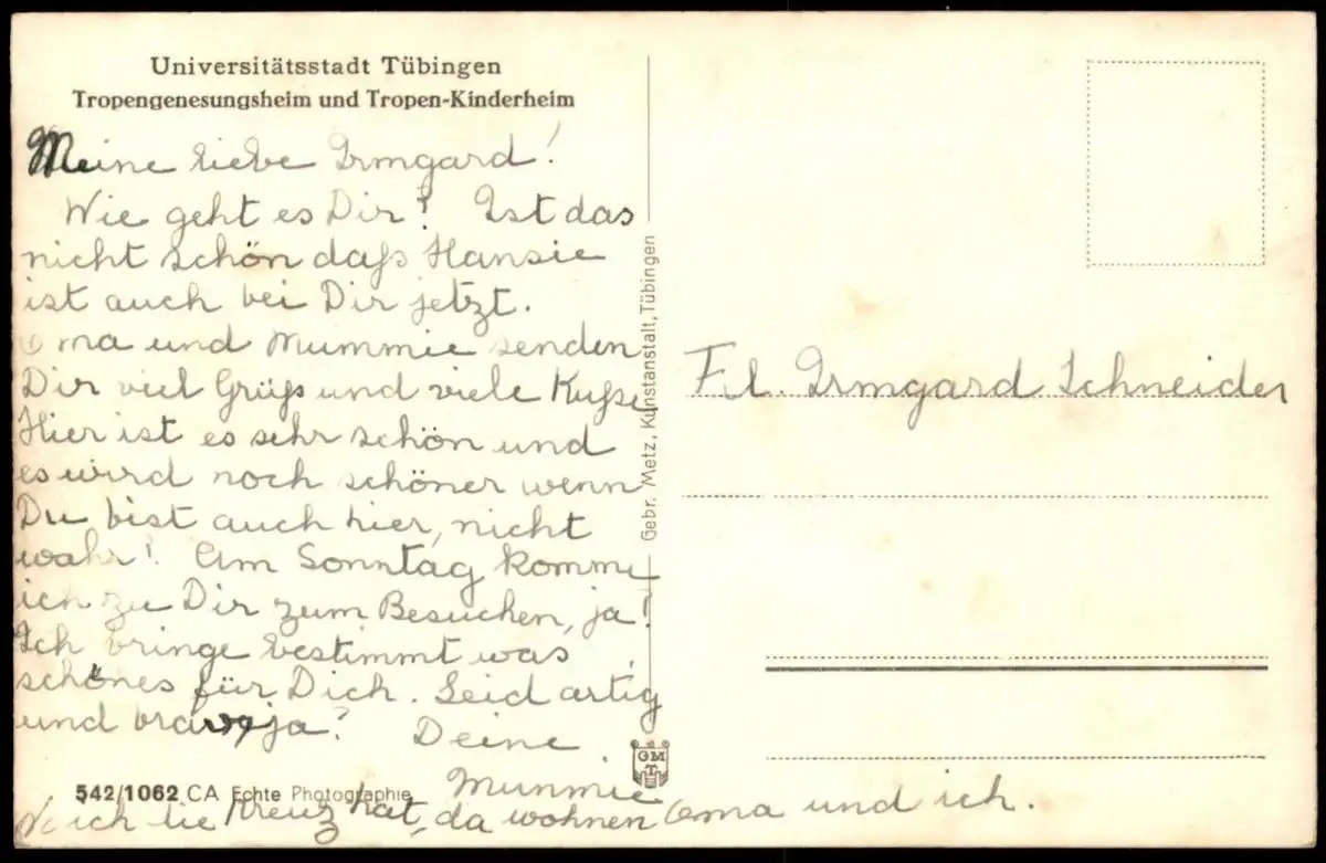 ALTE POSTKARTE TÜBINGEN TROPENGENESUNGSHEIM SÜDFRONT UND TROPEN-KINDERHEIMVerlag: Gebr. Metz, Tübingen