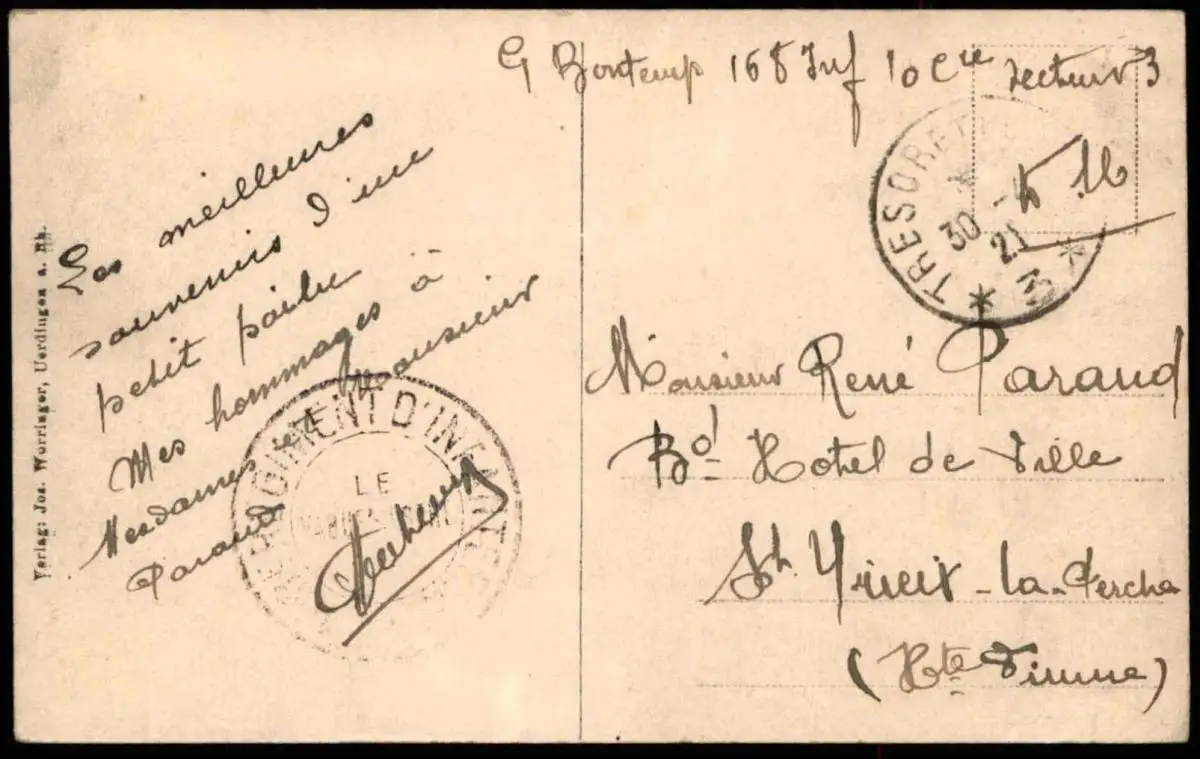 Gelaufen: 30.04.1920 mit Stempel Tresor et Postes nach Saint Yrieix la perche