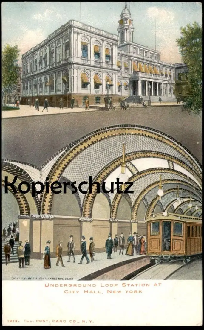 ALTE POSTKARTE UNDERGROUND LOOP STATION AT CITY HALL NEW YORK TUBE METRO TRAM Tramway Strassenbahn USA America postcard