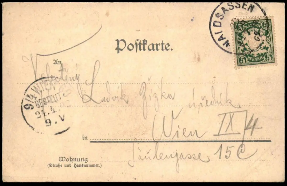 Gelaufen: 24.04.1902 mit Stempel Waldsassen nach Wien