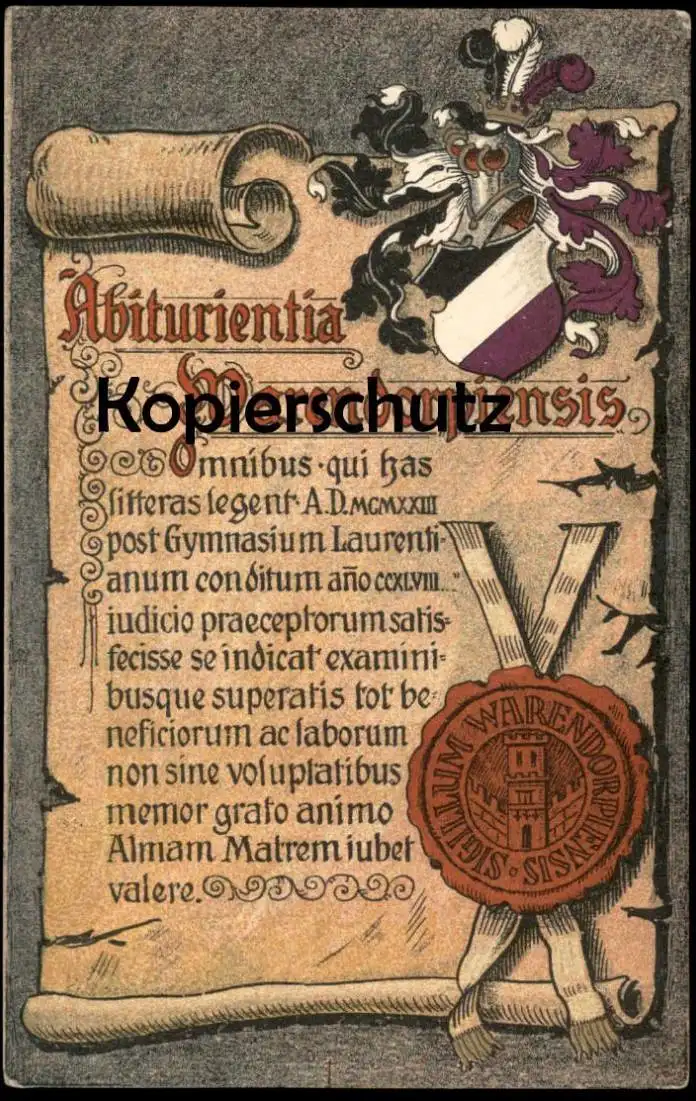 ALTE POSTKARTE WARENDORF ABITURIENTIA WARENDORPIENSIS 1923 LATEIN ABITUR COULEURKARTE STUDENTIKA KRIMPHOVE Ansichtskarte