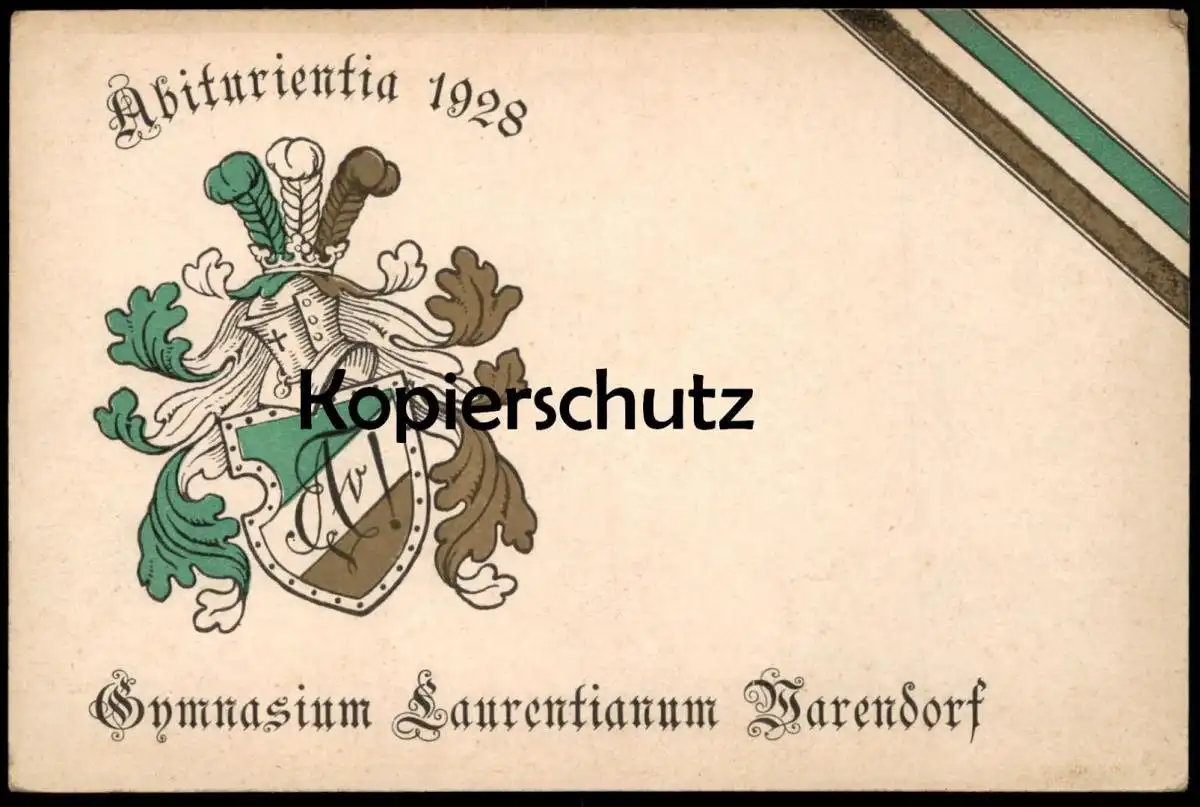ALTE POSTKARTE WARENDORF GYMNASIUM LAURENTIANUM ABITURIENTIA 1928 Abitur Abi Studentica Studentika Couleurkarte