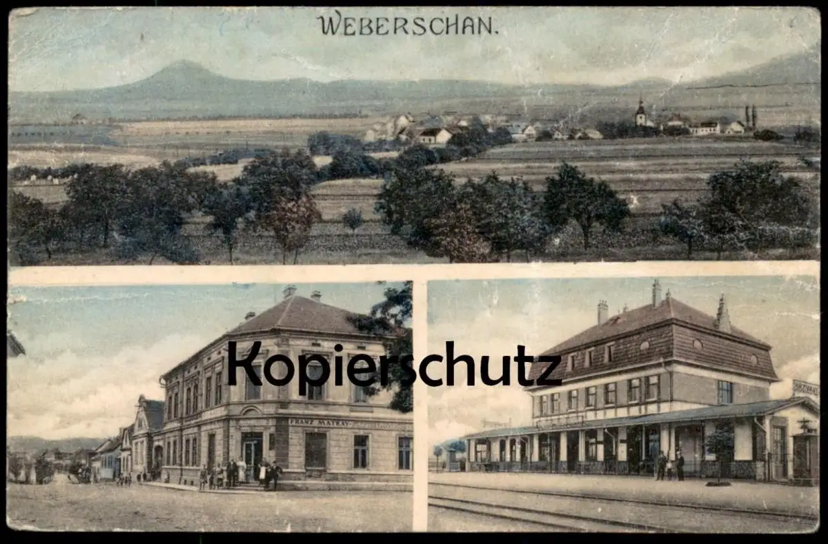 ALTE POSTKARTE WEBERSCHAN FRANU MATKAY BAHNHOF GESAMTANSICHTVerlag: Fr. Matkay; Photo A. K. Aussig III.