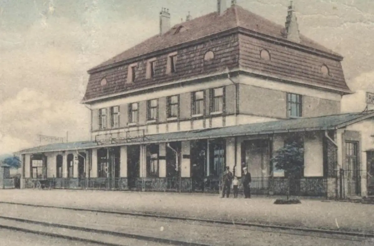 ALTE POSTKARTE WEBERSCHAN FRANZ MATKAY BAHNHOF Brvany Saaz Sudeten Sudetengau station gare ceska republika czech cpa AK