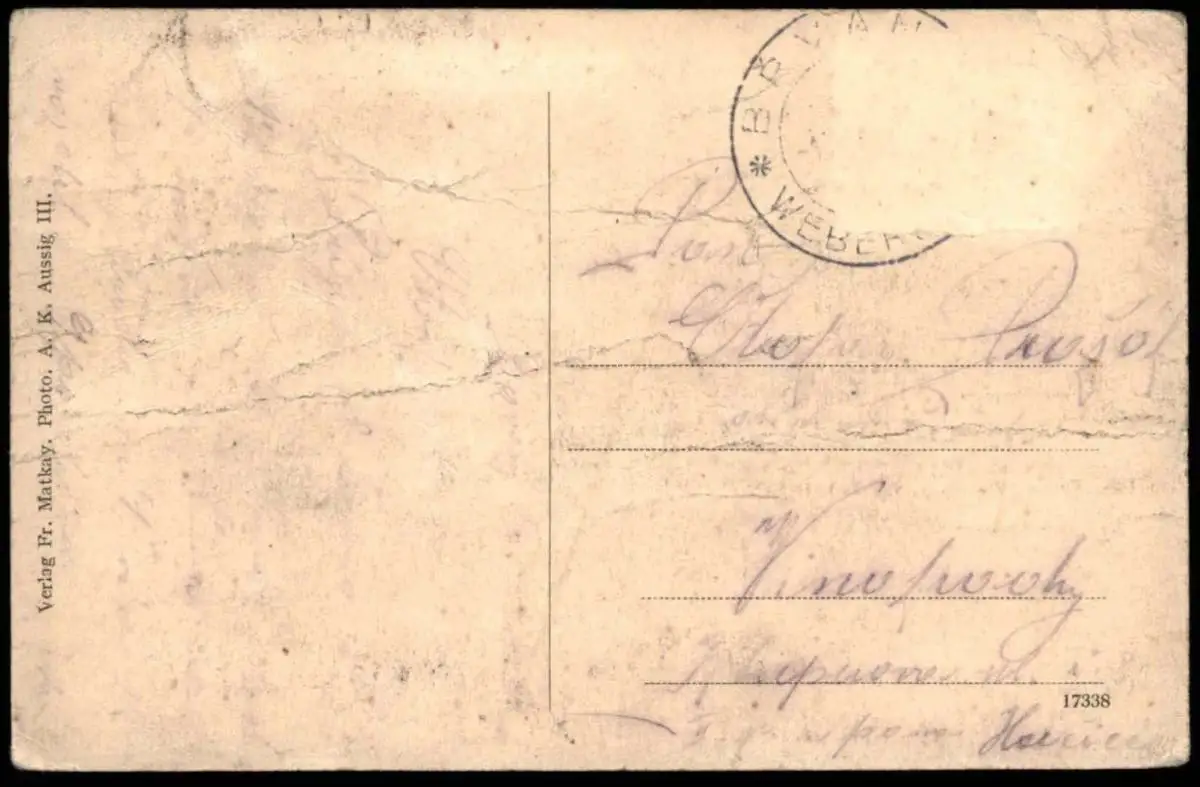 Gelaufen: xx.xx.19xx mit Stempel Weberschan, Briefmarke (sauber) entfernt