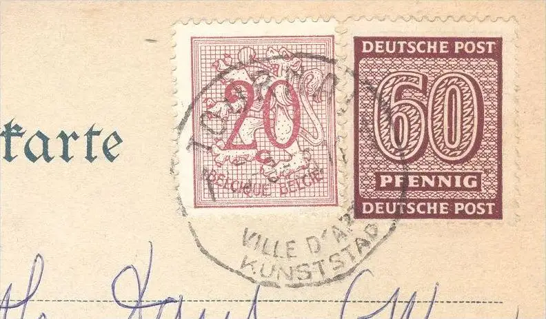 Gelaufen: xx.xx.1951 mit Stempel Tournai sowie Freimarke West-Sachsen 60 Pfennig Deutsche Post nach Tournai