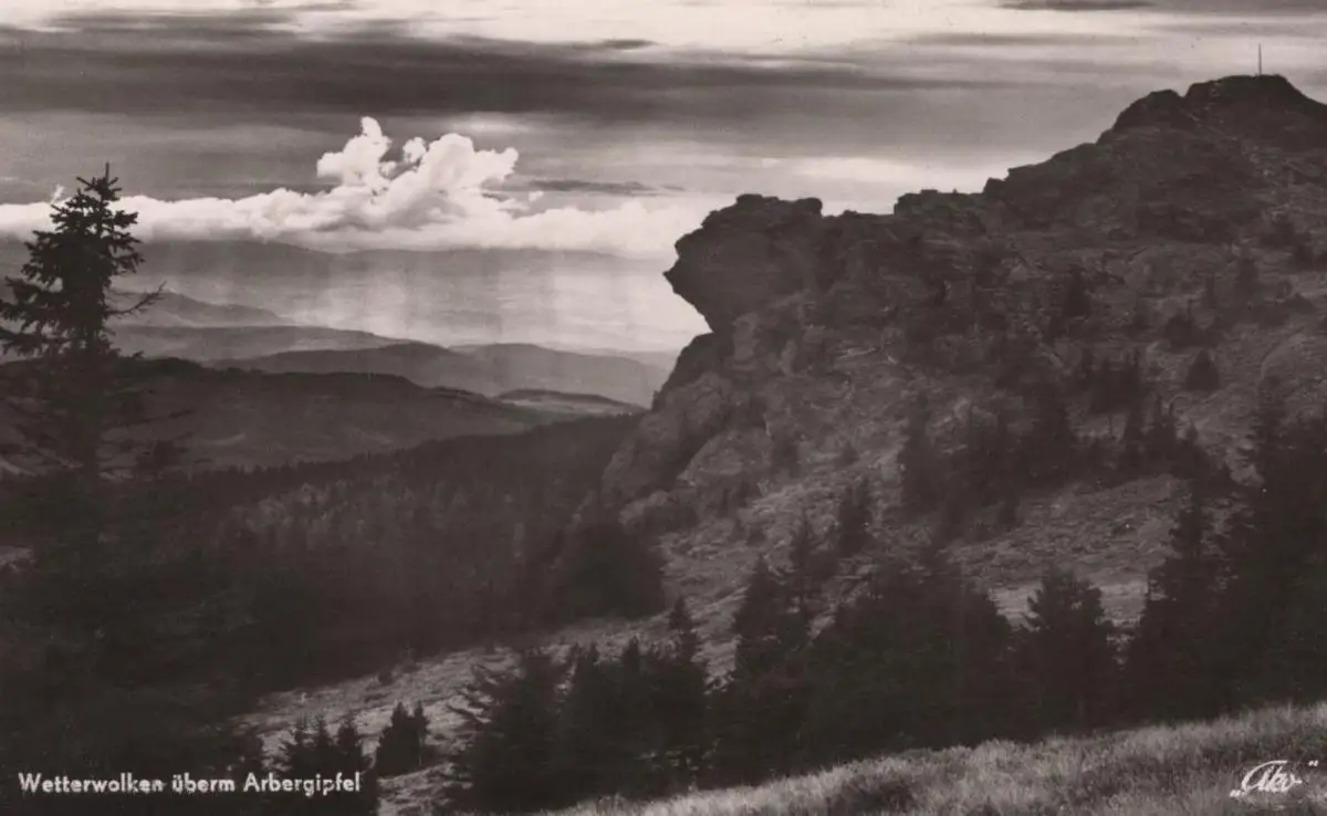 ALTE POSTKARTE WETTERWOLKEN ÜBERM ARBERGIPFEL ARBER BAYERISCH EISENSTEIN BODENMAIS Bayern Wetter weather clouds Wolken
