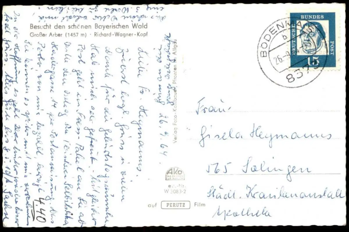 Gelaufen: 26.09.1964 mit Stempel Bodenmais nach Solingen