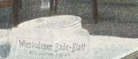 ALTE POSTKARTE WIESBADEN BIERSALON IM KURHAUS Zeitung Wiesbadener Bade-Blatt Newspaper Gazette Ober Garcon Waiter cpa AK