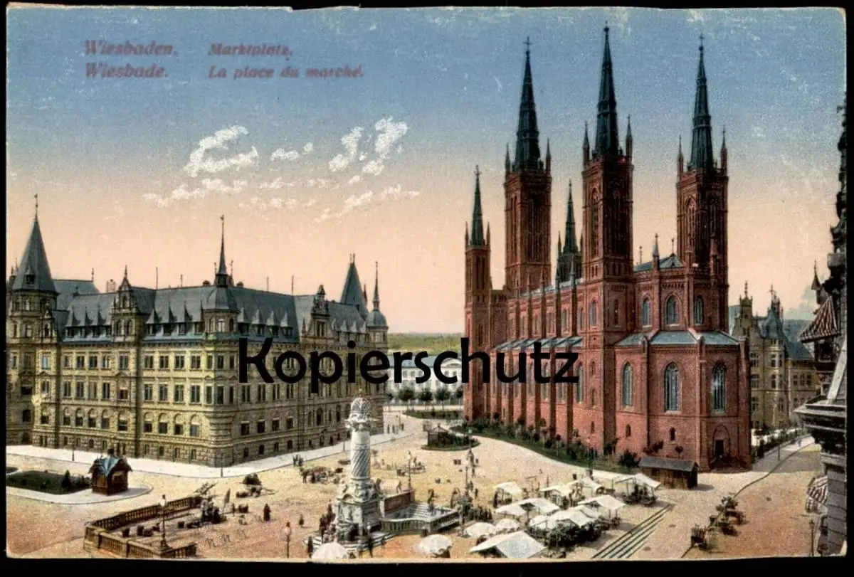 ALTE POSTKARTE WIESBADEN MARKTPLATZ LA PLACE DU MARCHÉ Markt market AK Ansichtskarte cpa postcard