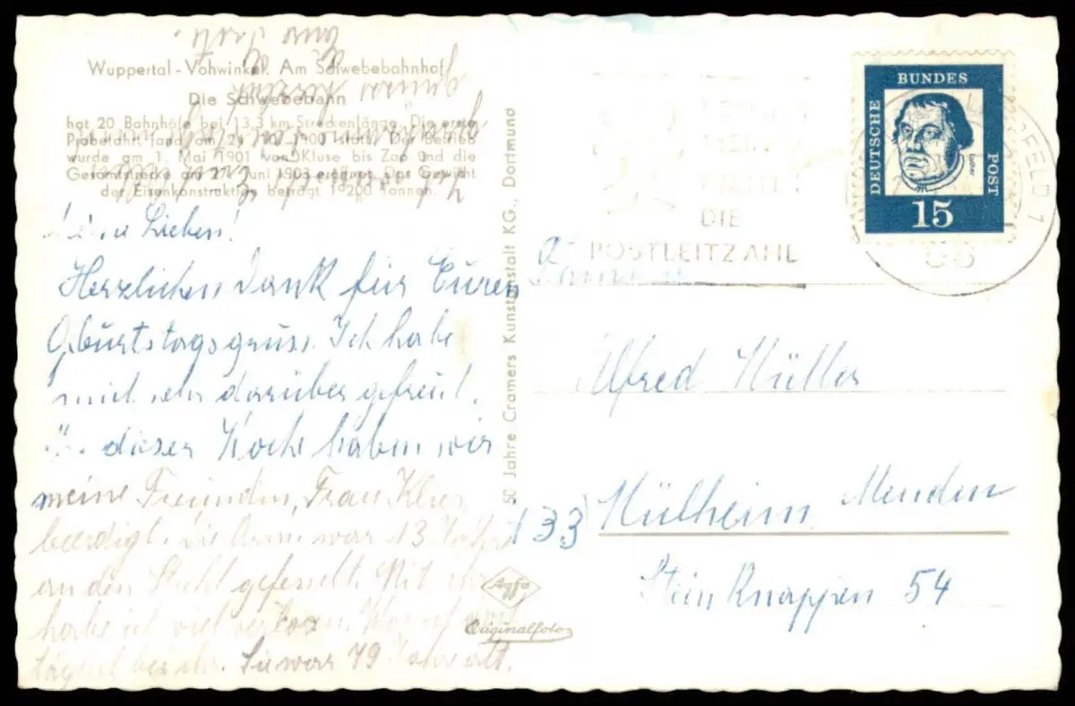 Gelaufen: xx.xx.1965 mit Stempel Wuppertal-Elberfeld nach Mülheim