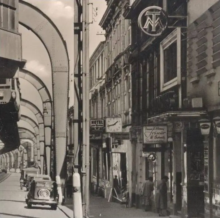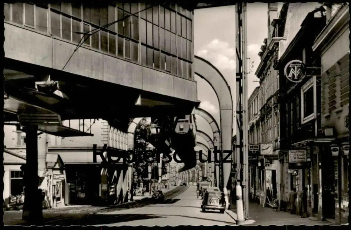 ALTE POSTKARTE WUPPERTAL VOHWINKEL AM SCHWEBEBAHNHOF DIE SCHWEBEBAHN HAT 20 BAHNHÖFE Hotel zur Krone Friseur Schmitz