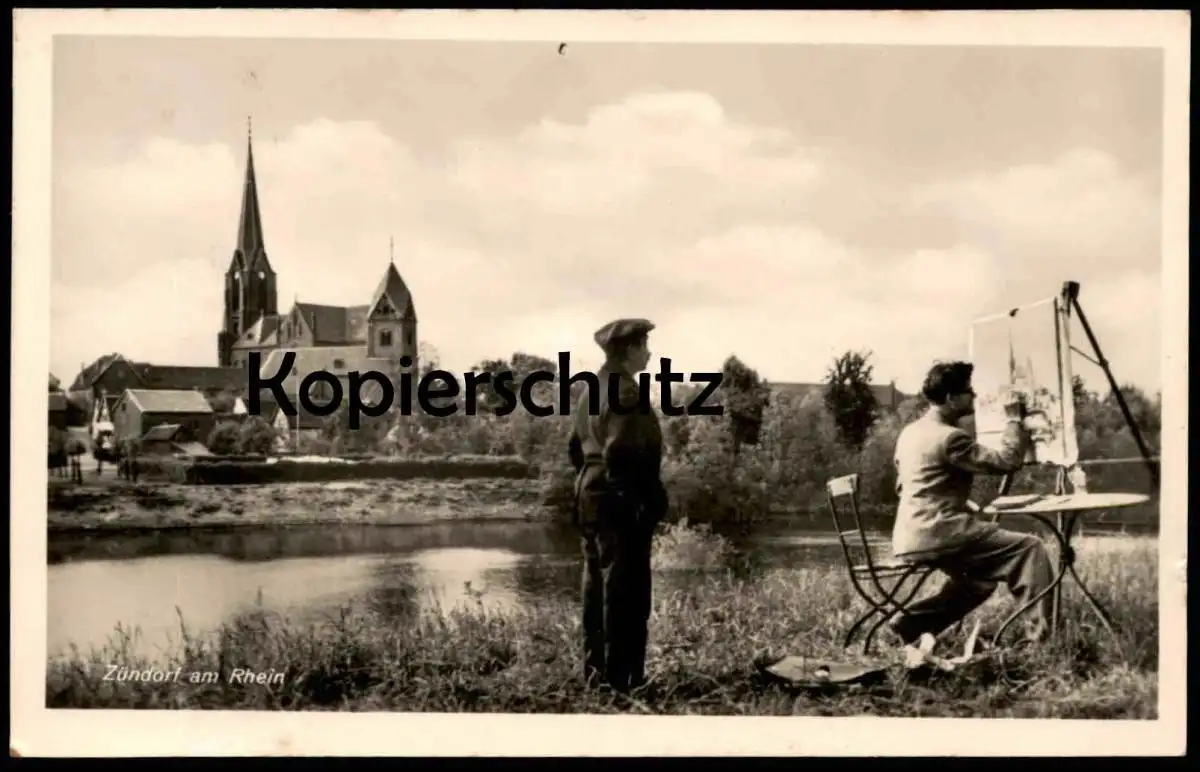 ALTE POSTKARTE ZÜNDORF AM RHEIN MALER STAFFELEI BETRACHTER KIRCHE GROOV KÖLN painter Ansichtskarte cpa AK postcard