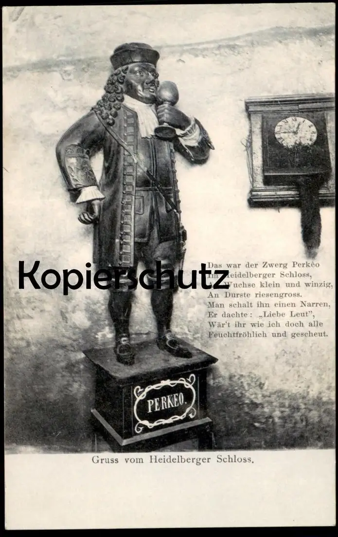 ALTE POSTKARTE ZWERG PERKEO GRUSS VOM HEIDELBERGER SCHLOSS midget nain dwarf Heidelberg Ansichtskarte postcard cpa AK