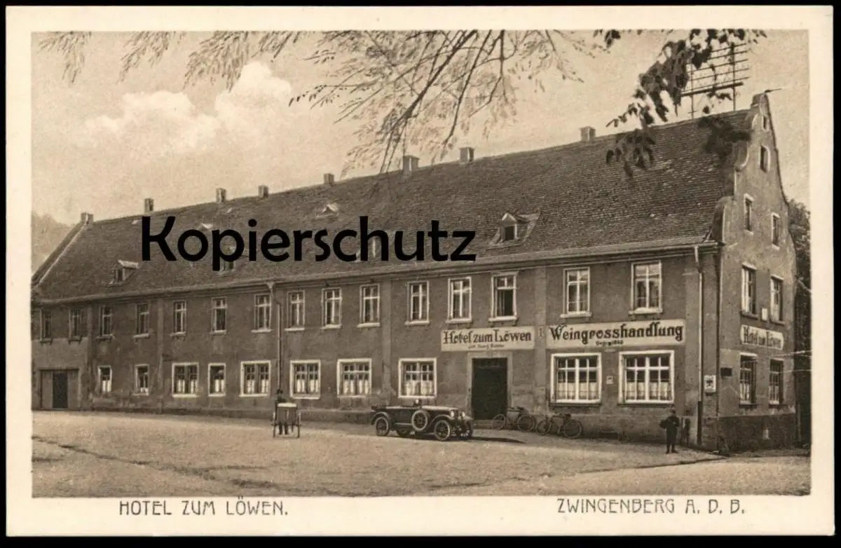 ALTE POSTKARTE ZWINGENBERG AN DER BERGSTRASSE HOTEL ZUM LÖWEN WEINGROSSHANDLUNG Auto old car oldtimer Wein vine vin cpa