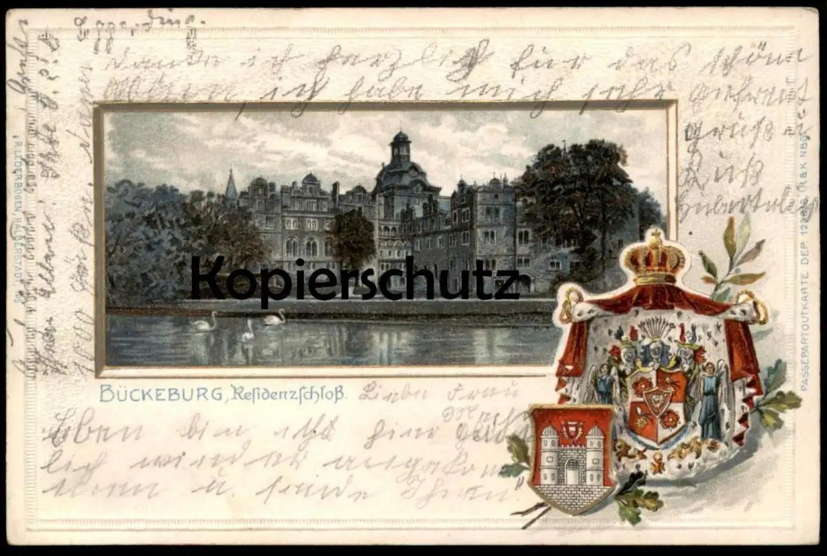 ALTE PRÄGE POSTKARTE BÜCKEBURG SCHLOSS PRÄGEKARTE WAPPEN 1902 Residenzschloss castle gold embossed gaufrée coat of arms
