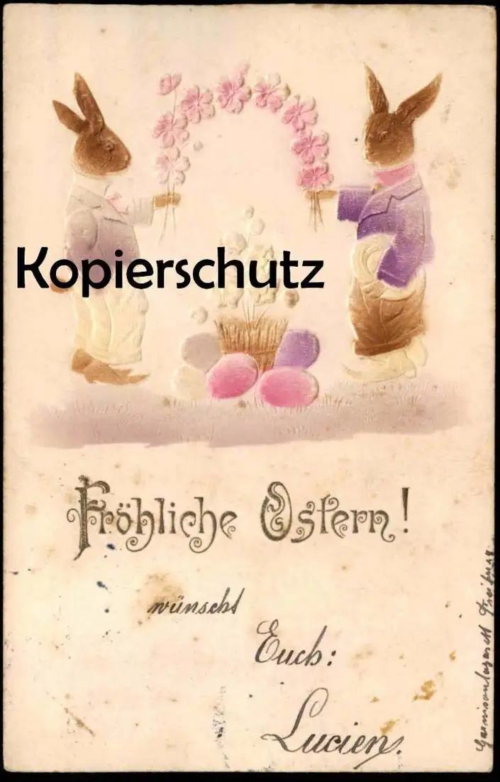 ALTE PRÄGE POSTKARTE FRÖHLICHE OSTERN HASEN VERMENSCHLICHT EI Hase rabbit bunny easter embossed gaufree AK cpa postcard