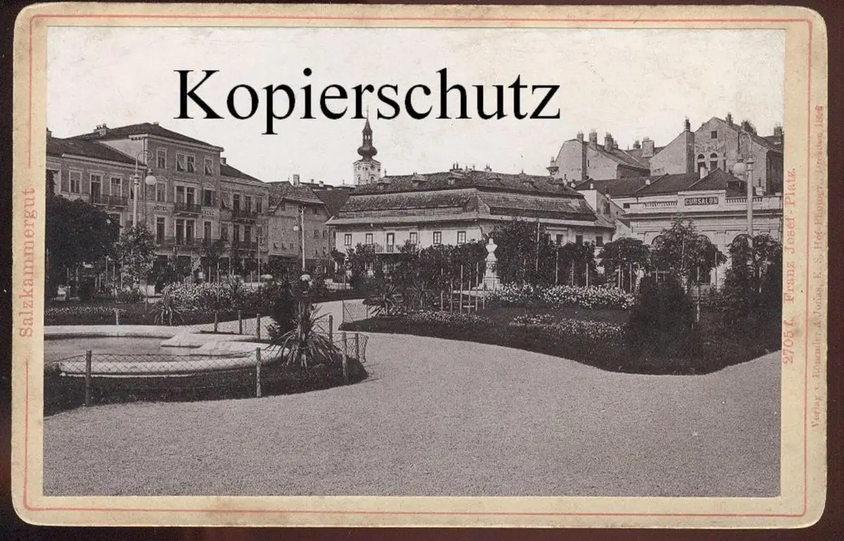 ALTES KABINETTFOTO SALZKAMMERGUT GMUNDEN FRANZ JOSEF PLATZ CURSALON FOTO PHOTO RÖMMLER & JORIAS DRESDEN 1896 CDV CAB