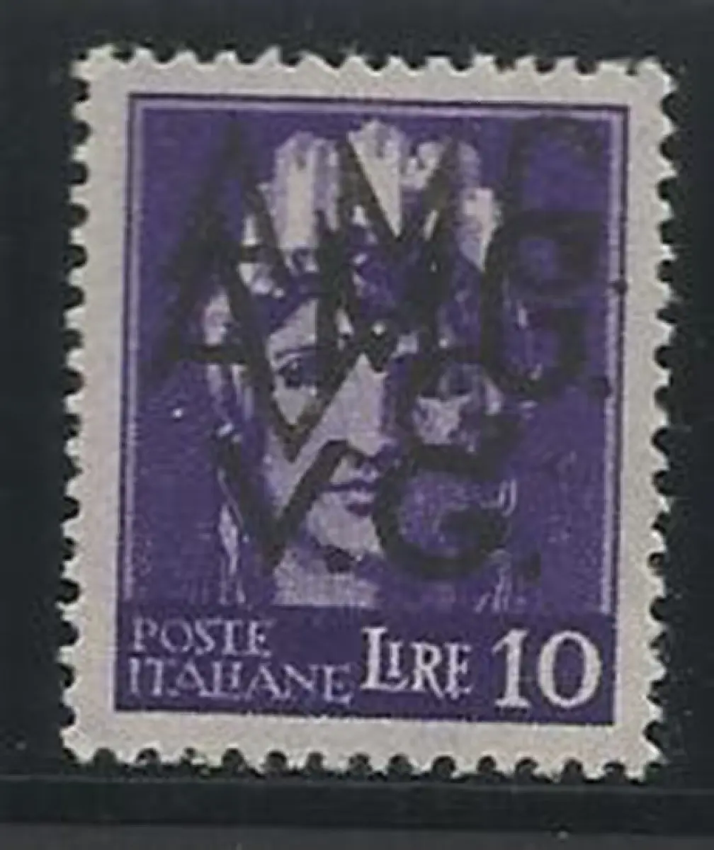 AMG. Sehr guter Zustand. - Imperiale Lire 10 Sorten Doppelaufdruck Vollgummi - AMG. Sehr guter Zustand. - Imperiale Lire 10 Nr. 11e schönes Exemplar (weißer Gummi) mit vertikal gut versetztem Doppelaufdruck - Ungewöhnlich - Kat. 320 n. 964/5