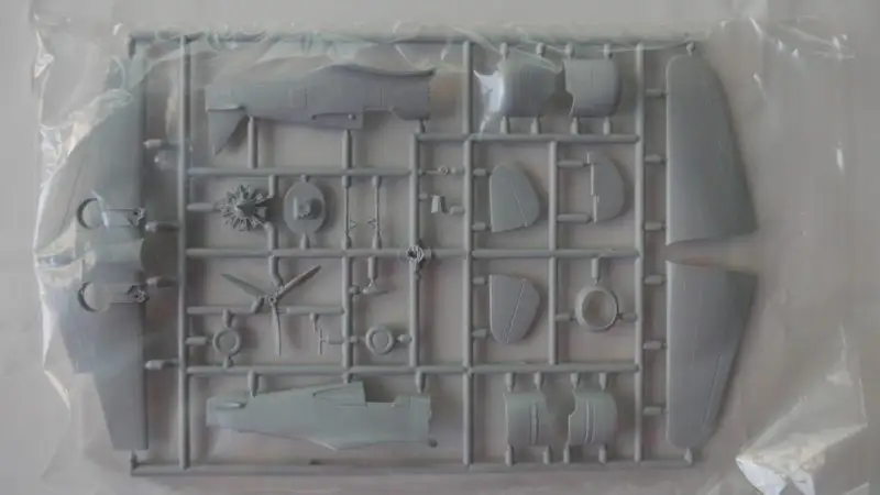 Einzelteile (Plastikbauteile) sind noch am Rahmen fixiert, Sichthülle wurde geöffnet.
