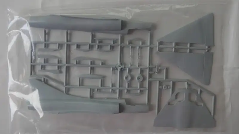 Einzelteile (Plastikbauteile) sind noch am Rahmen fixiert, Sichthülle wurde geöffnet.