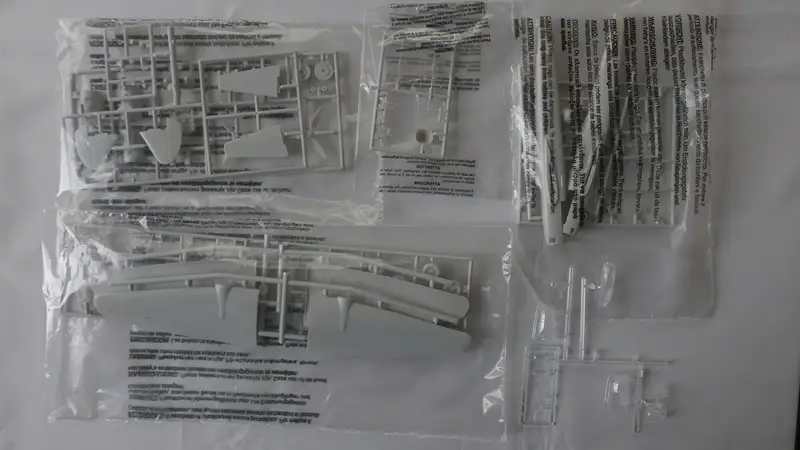 Einzelteile (Plastikbauteile) sind am Rahmen fixiert und bis auf die Clear Parts in geschlossenen Sichthüllen.