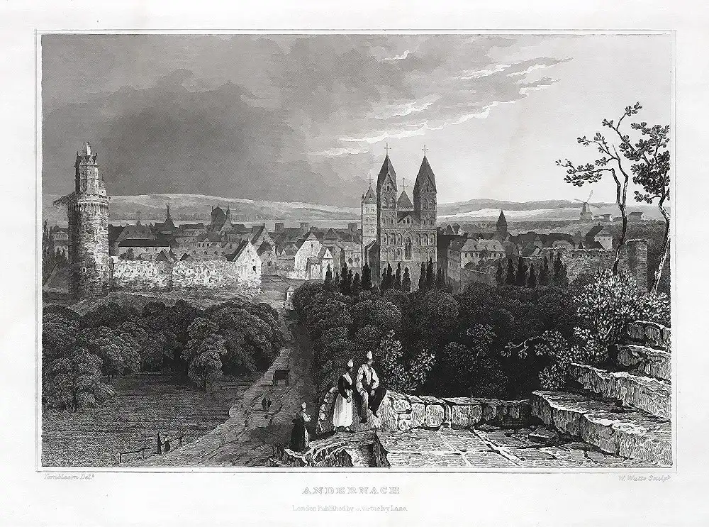 ANDERNACH. Gesamtansicht mit Dom. Originaler Stahlstich um 1840