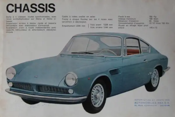 ASA Bertone Coupe 1000 GT Modellprogramm 1962 Automobilprospekt (5458)