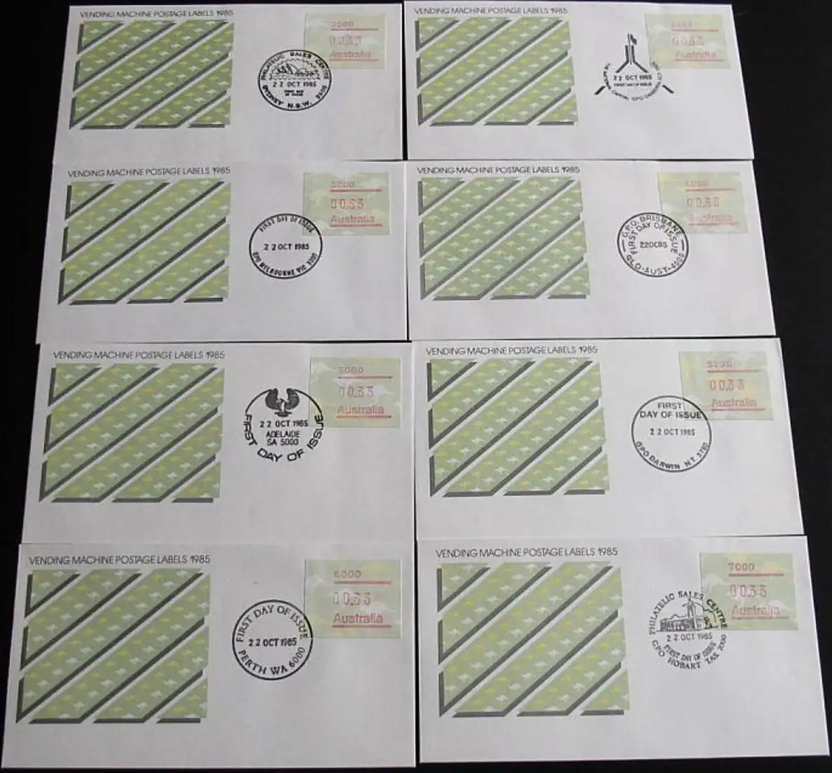 AUSTRALIEN 1985 Mi-Nr. ATM 4.1. - 4.8 Automatenmarken FDC