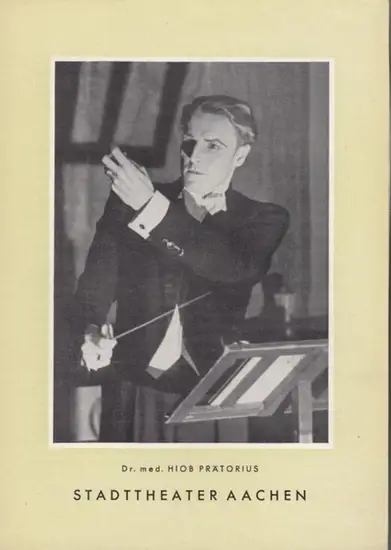 Titel: Dr. med. Hiob Prätorius. Programmzettel des Stadttheaters Aachen. Erstaufführung des Stückes von Curt Goetz. Inszenierung: Hans Schalla, mit u. a.: Erich Weiland, Kurt Haars, Hannelore Junker, Helene Grundmann, Udo Löptin. Weiterer Inhalt: Curt Goetz - Der Lustspieldichter