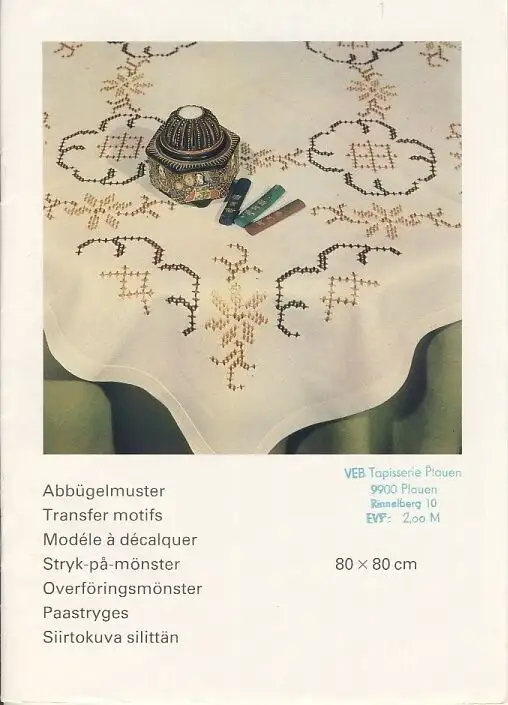 Abbügelmuster / Transfer motifs / Modéle à décalquer / Stryk-på-mönster / Overföringsmönster / Paastryges / Siirtokuva silittän Tischdecke 80x80.