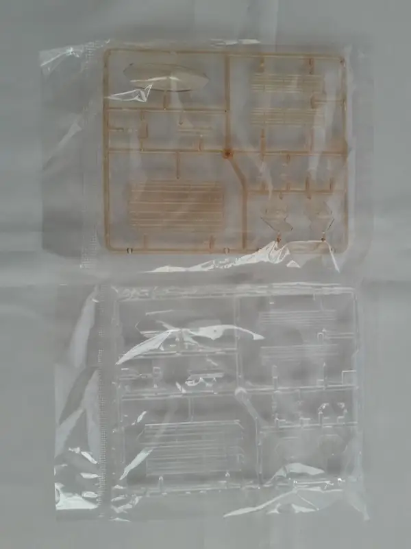 Einzelteile (Plastikbauteile) befinden sich in versiegelten Sichthüllen.