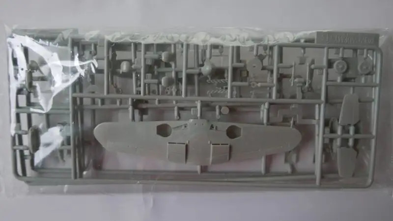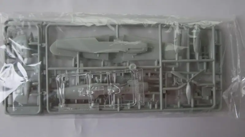 Einzelteile (Plastikbauteile) sind noch am Rahmen fixiert, Sichthüllen wurden geöffnet.