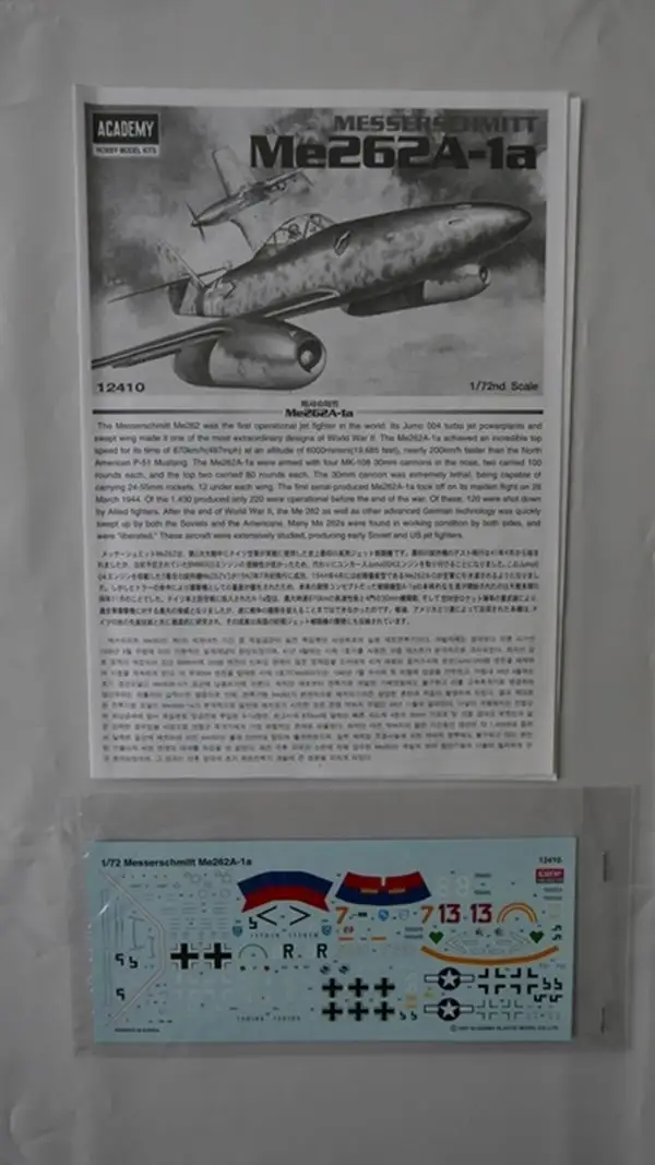 Academy Messerschmitt Me262A-1a-1:72-12410-Bauteile versiegelt-Modellflieger-OVP-0250