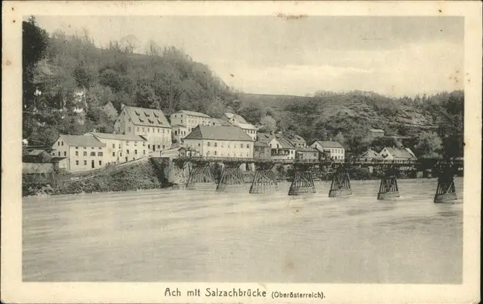 Ach Salzach Teilansicht Ach Salzach Bruecke Oesterreich postalisch gelaufen 1922 gute Erhaltung Alte Ansichtskarte Postkarte hz Fhwoer