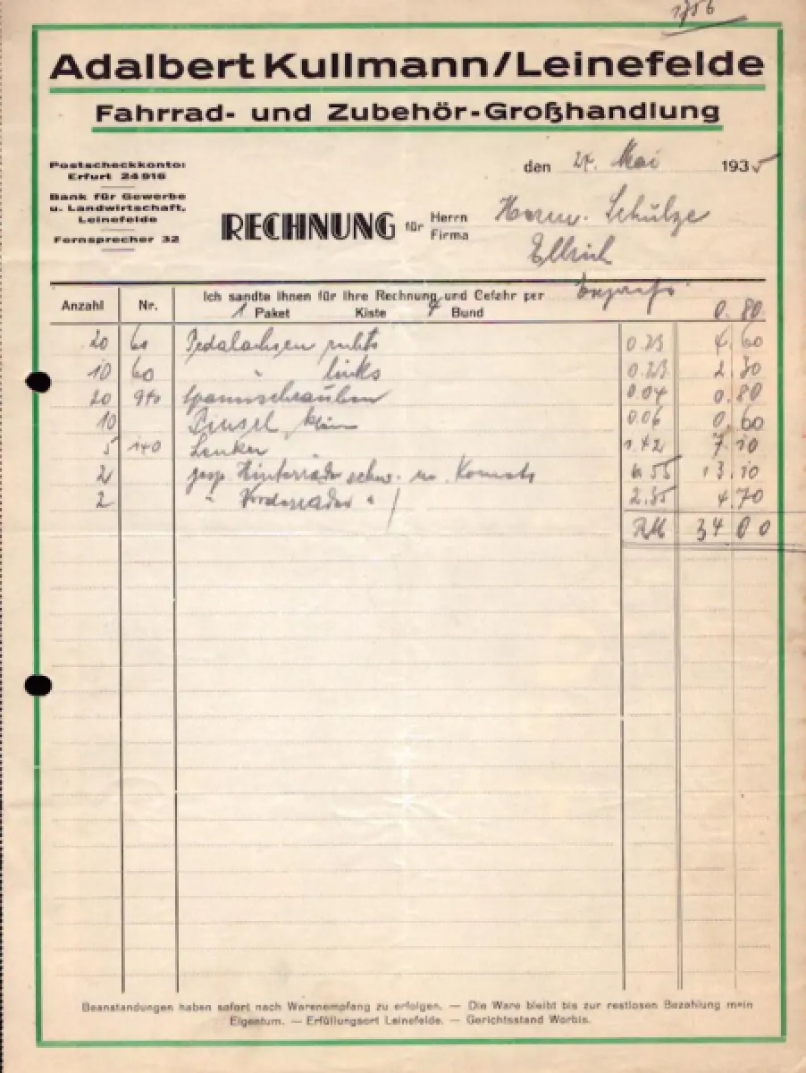 Adalbert Kullmann Leinefelde Rechnung 1934 / 1935