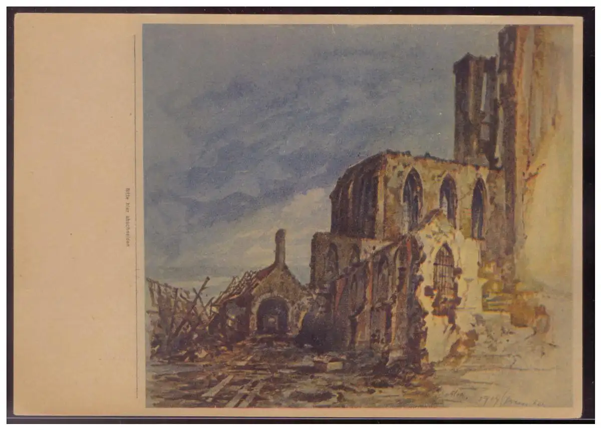 Freie Beschreibung: DT- Reich (008230) Propaganda Sammelbild Adolf Hitler Bild 105, Aquarell des Frontsoldaten Hitler: Klosterruine