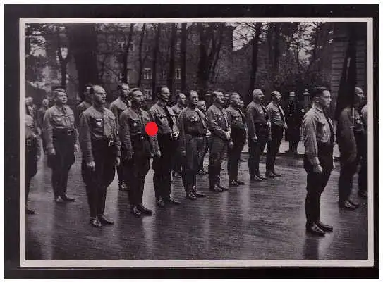 Freie Beschreibung: DT- Reich (008880) Propaganda Sammelbild Adolf Hitler Bild 177, Die Spitze der alten Kämpfer am 9.11.35 vor dem Braunen