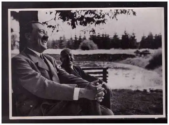 DT- Reich (008888) Propaganda Sammelbild Adolf Hitler Bild 7, Reise durch den Harz. Auch der Führer kann fröhlich sein.