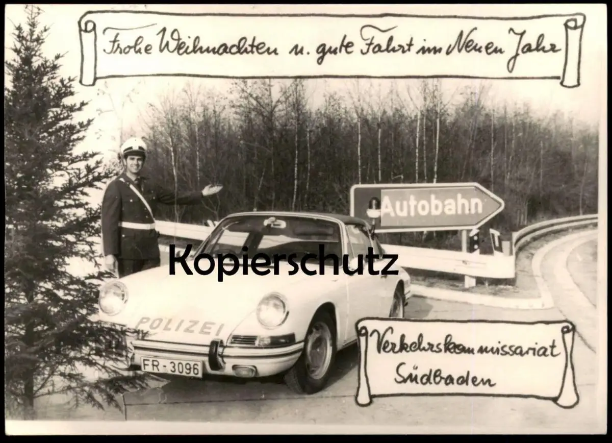 ÄLTERE KARTE VERKEHRSKOMMISSARIAT SÜDBADEN POLIZEI PORSCHE 911 AUTOBAHN police uniform Autogramm Freiburg ?