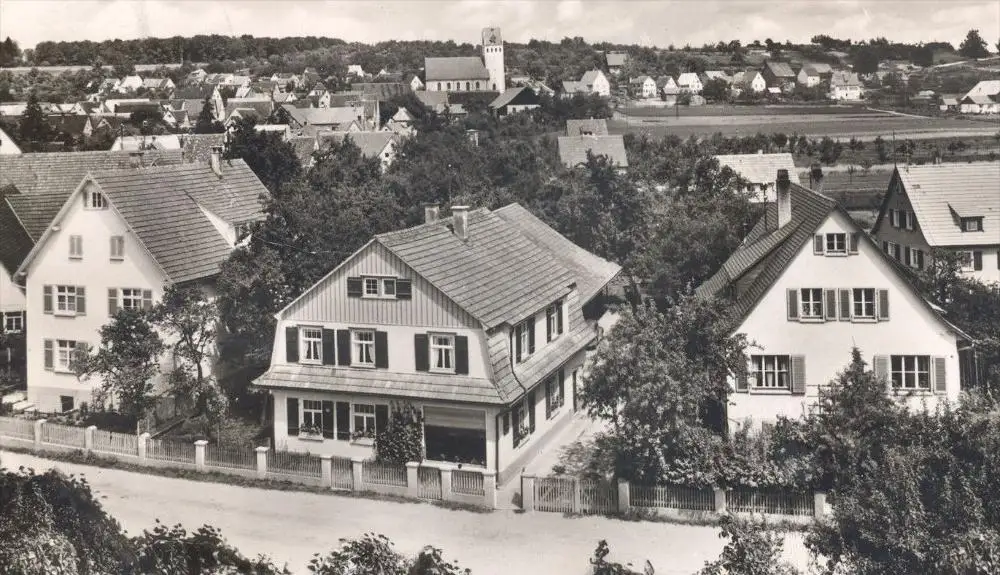 ÄLTERE POSTKARTE ALBHEIM ALB PANORAMA HÄUSERVerlag: Hans Schiehlen, Bäckerei-Gemischtwaren, Altheim Alb Kreis Ulm
