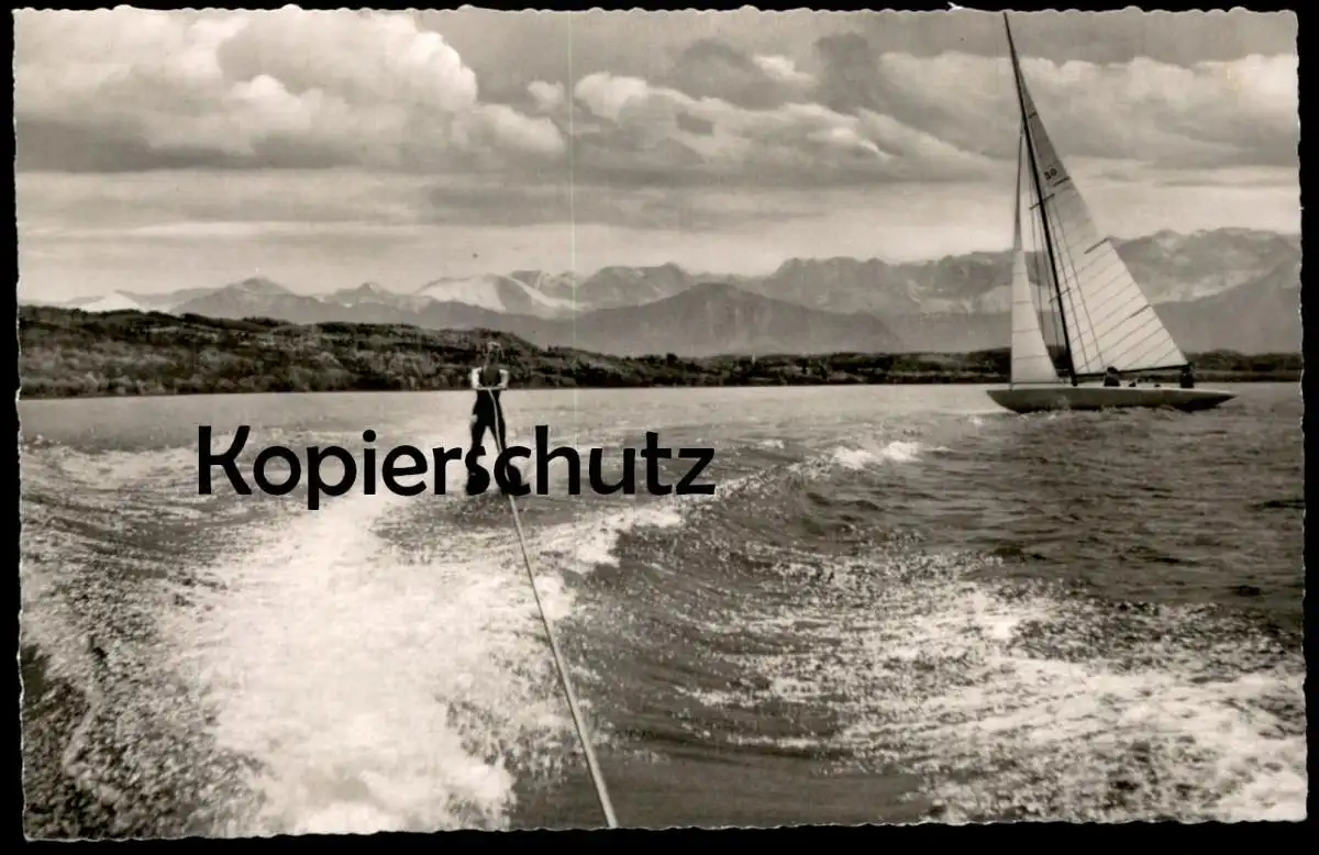 ÄLTERE POSTKARTE AMMERSEE GEGEN KARWENDELGEBIRGE SPIEL AUF DEN WELLEN WASSERSKIVerlag: Südbild, Axel Bermoser, München und Eching
