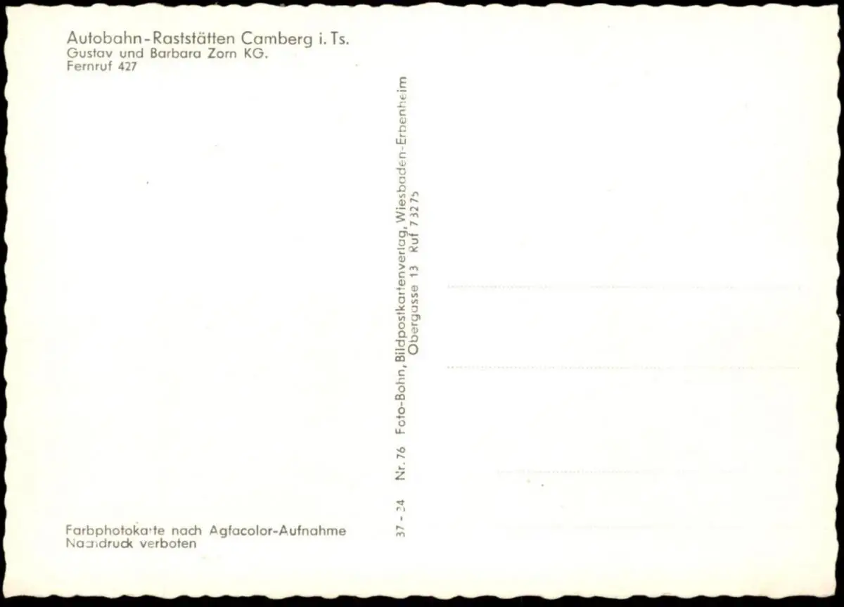 ÄLTERE POSTKARTE AUTOBAHN-RASTSTÄTTEN CAMBERG IM TAUNUS GUSTAV UND BARBARA ZORN KG RASTHAUS RASTSTÄTTE RASTHOF AUTOHOF Verlag: Foto Bohn, Wiesbaden-Erbenheim Gelaufen: neinErhaltung (s. Scan): gut - sehr gut / 918569