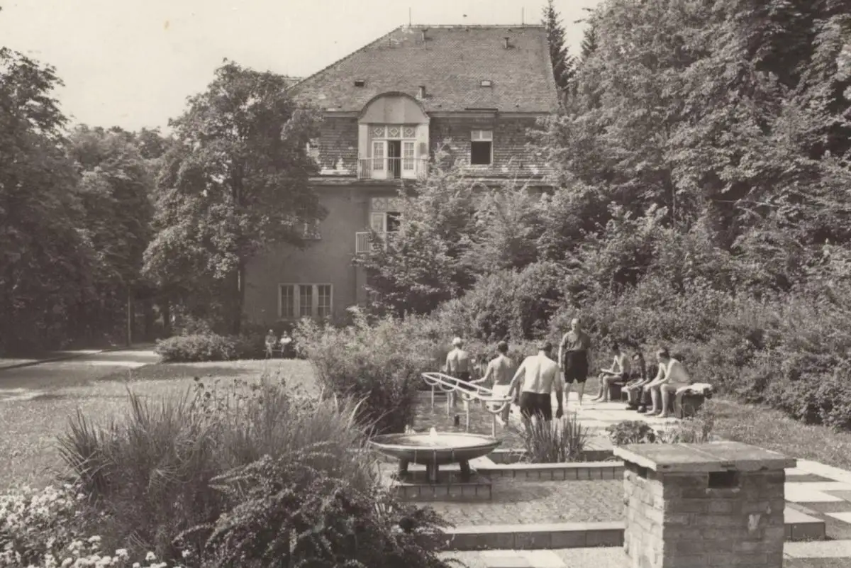 ÄLTERE POSTKARTE BAD GOTTLEUBA KLINIK-SANATORIUM WASSERTRETANLAGE UND STATION 7Verlag: VEB-Foto-Verlag, Erlbach