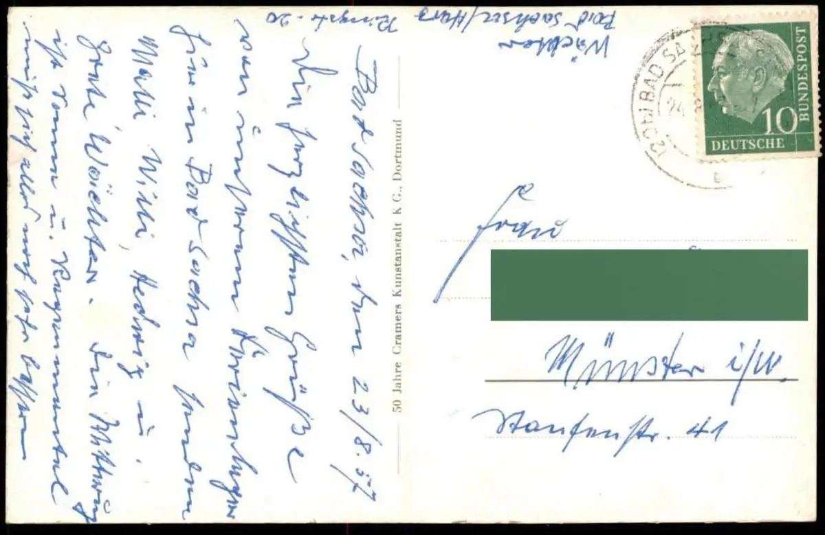 Gelaufen: 24.08.1957 mit Stempel Bad Sachsa nach Münster