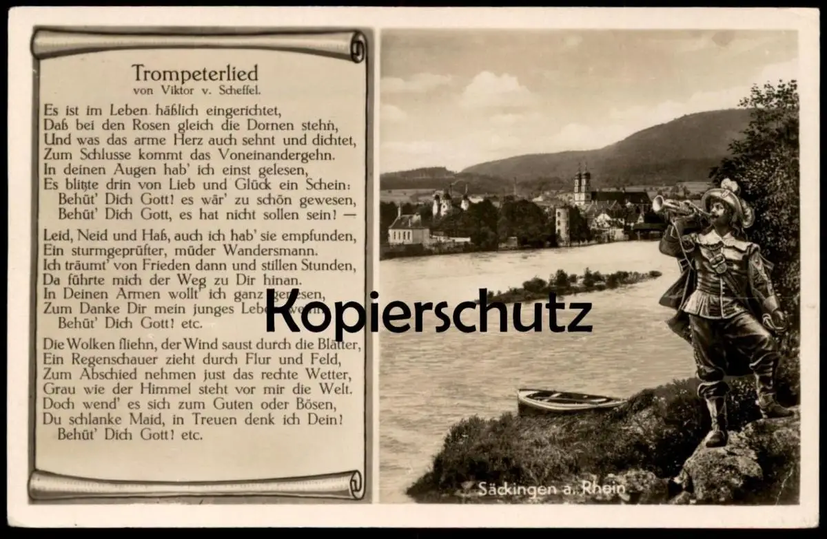 ÄLTERE POSTKARTE BAD SÄCKINGEN TROMPETERLIED BEHÜT DICH GOTT Lied Chanson Song Trompete Trumpet Trompette cpa postcard
