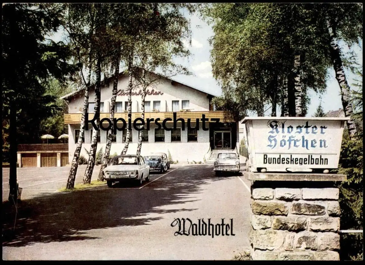 ÄLTERE POSTKARTE BENSBERG FRANKENFORST HOTEL KLOSTERHÖFCHEN WALDHOTEL BUNDESKEGELBAHN AN DER BUNDESSTRASSE 55 INHABERIN USCHI HEINYVerlag: Cramers,Dortmund