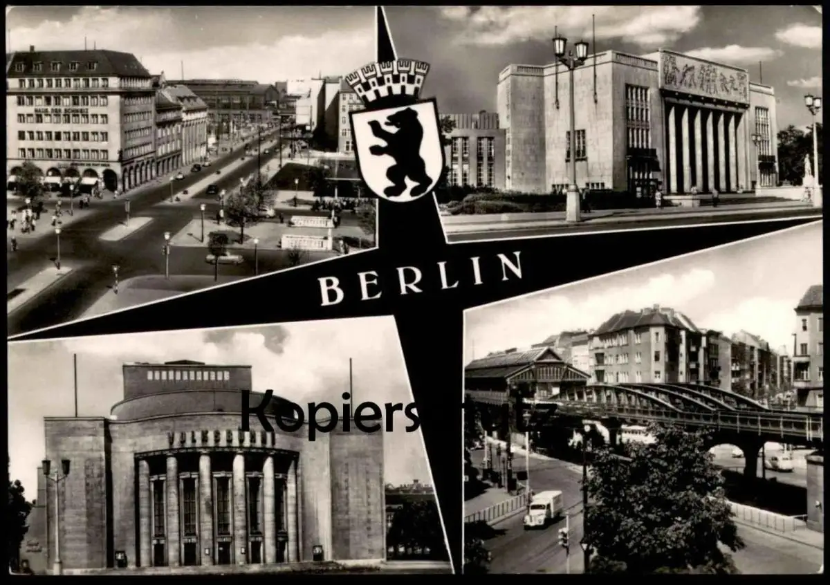 ÄLTERE POSTKARTE BERLIN WAPPEN VOLKSBÜHNE FRIEDRICHSTRASSE SPARKASSE DER STADT BERLIN HAUS DER SCHWEIZVerlag: Gebr. Garloff KG, Magdeburg